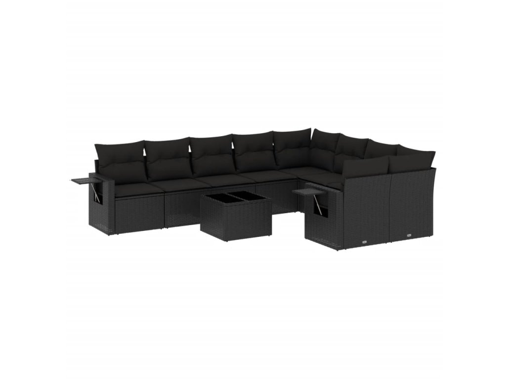 10dílná zahradní sedací souprava s poduškami černá polyratan 3220644
