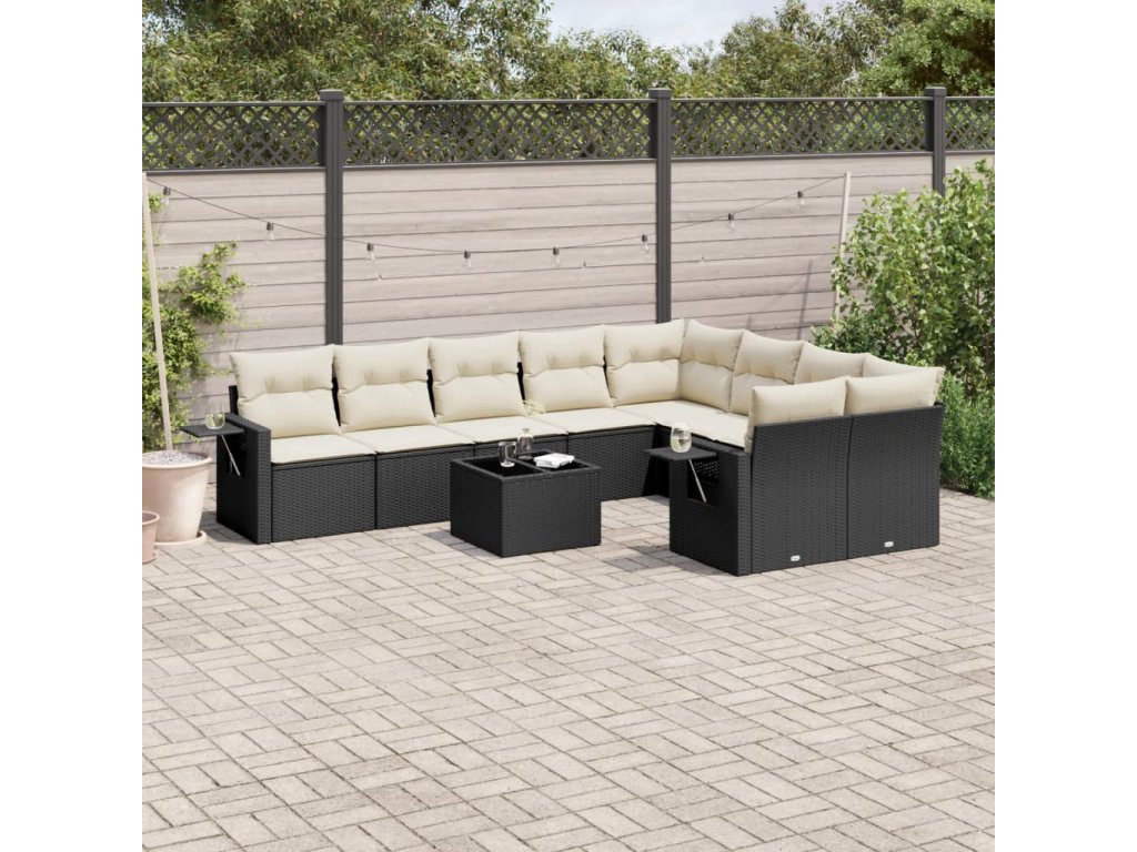 10dílná zahradní sedací souprava s poduškami černá polyratan 3220645