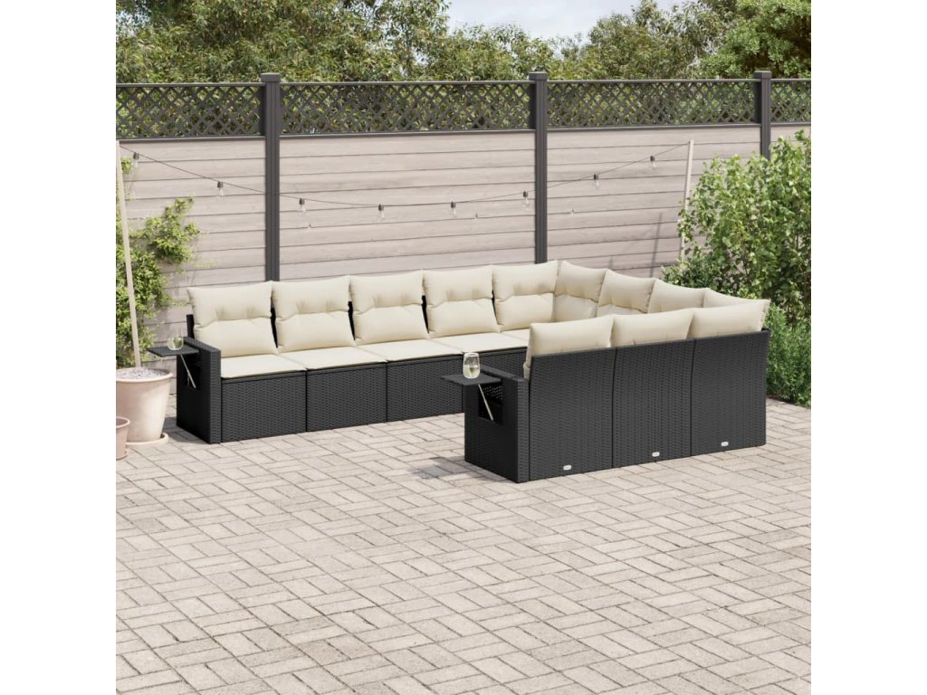 10dílná zahradní sedací souprava s poduškami černá polyratan 3220685