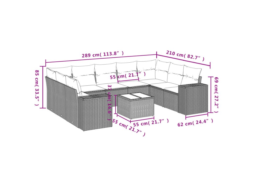 10dílná zahradní sedací souprava s poduškami černá polyratan 3223005