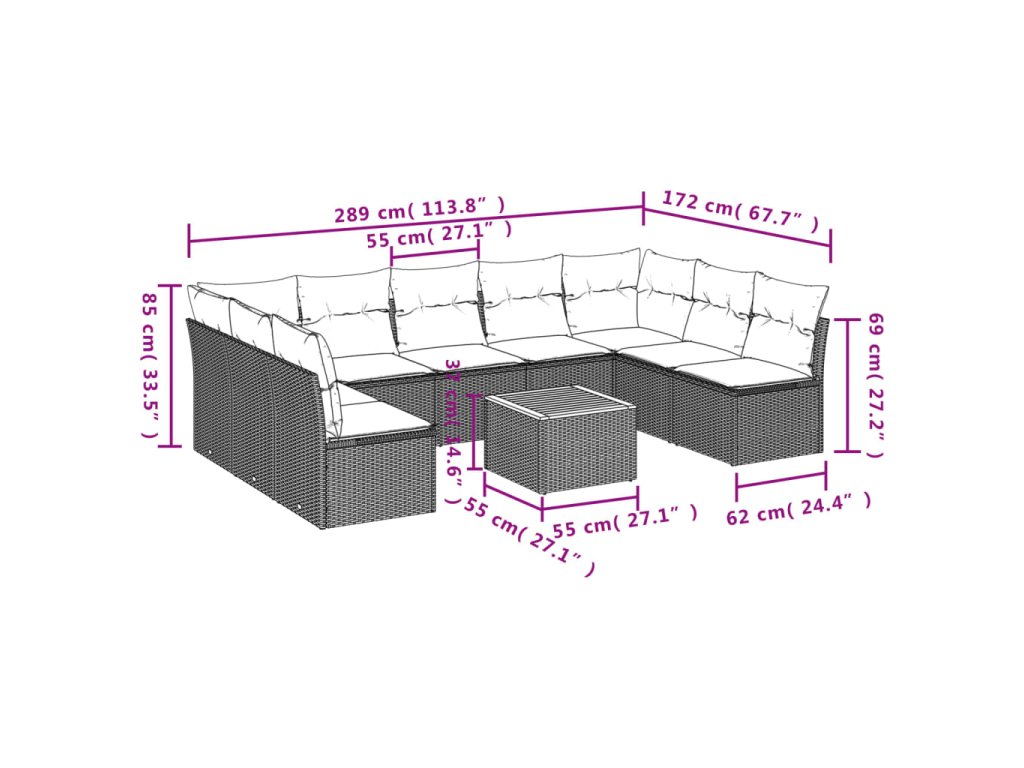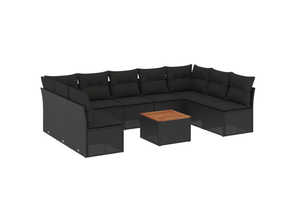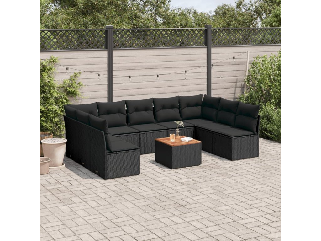 10dílná zahradní sedací souprava s poduškami černá polyratan 3223787