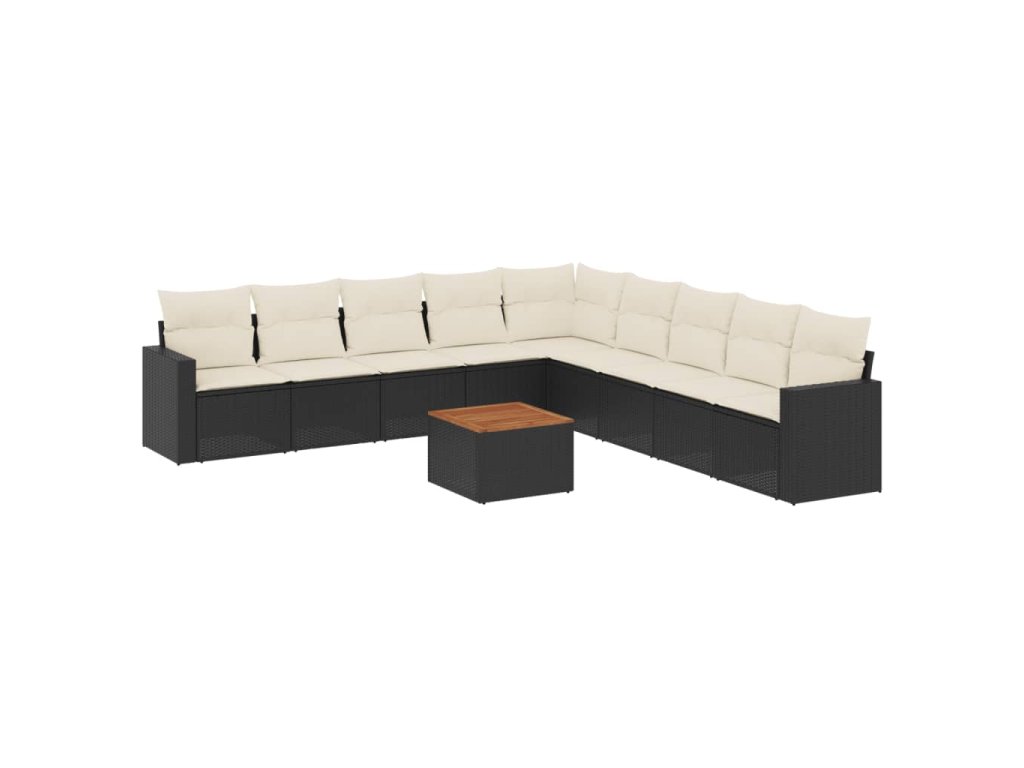 10dílná zahradní sedací souprava s poduškami černá polyratan 3224166