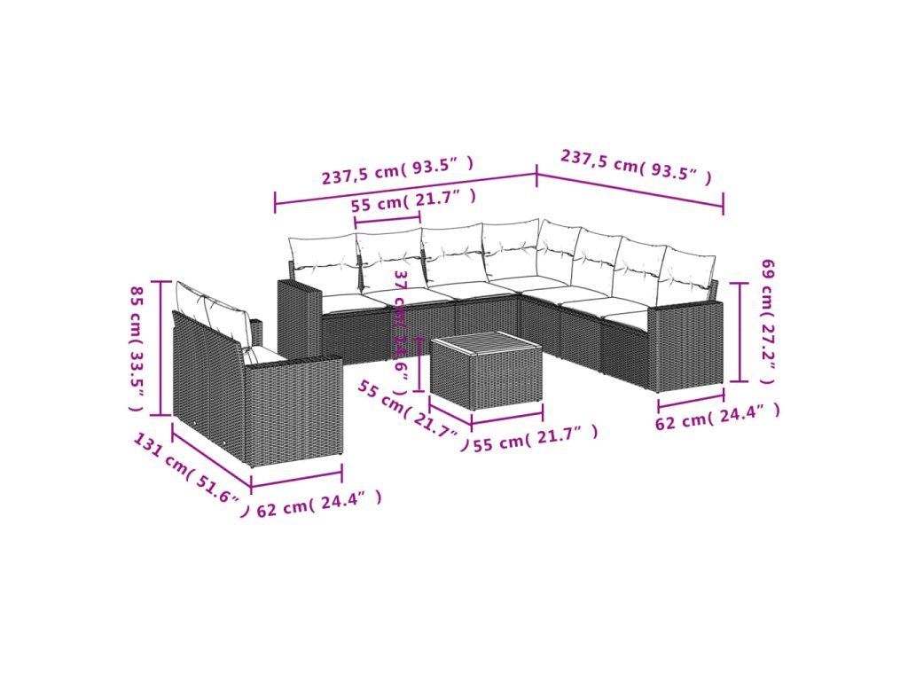 10dílná zahradní sedací souprava s poduškami černá polyratan 3224186