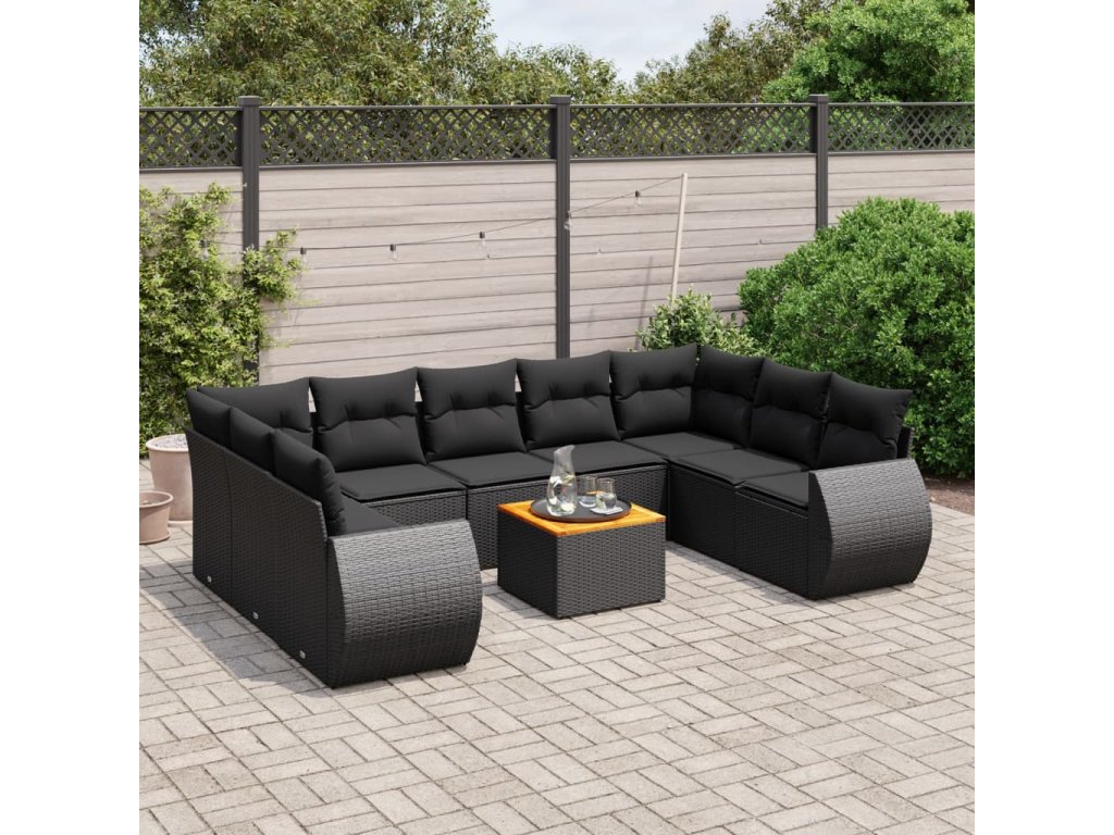 10dílná zahradní sedací souprava s poduškami černá polyratan 3225145