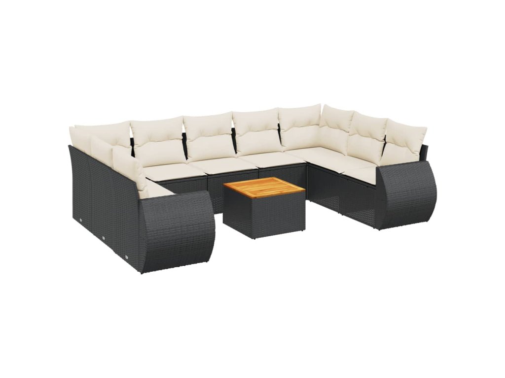 10dílná zahradní sedací souprava s poduškami černá polyratan 3225146