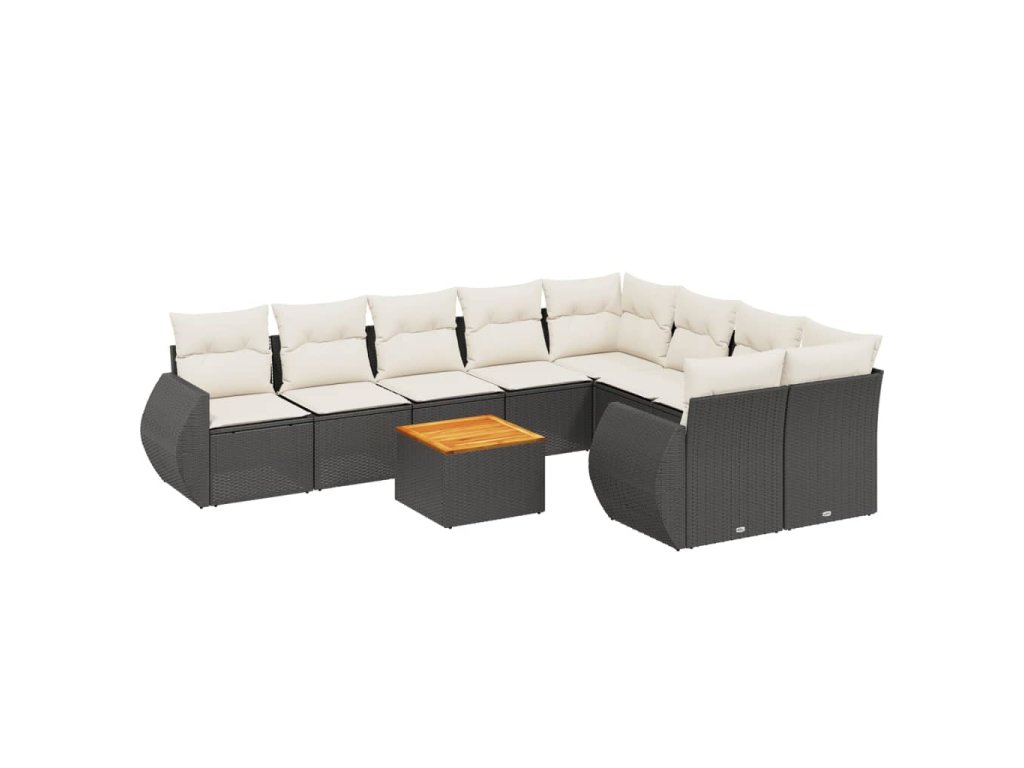10dílná zahradní sedací souprava s poduškami černá polyratan 3225160