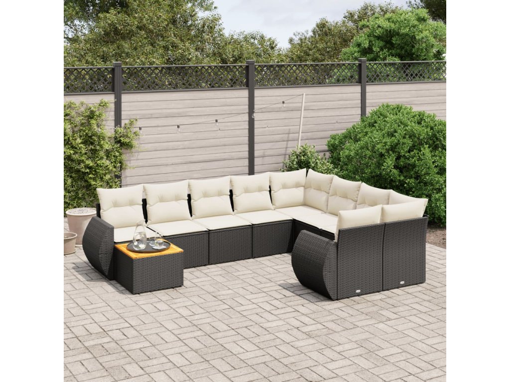 10dílná zahradní sedací souprava s poduškami černá polyratan 3225167