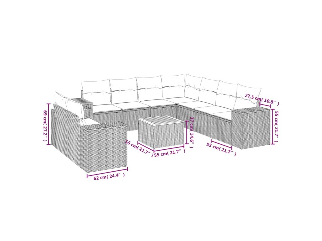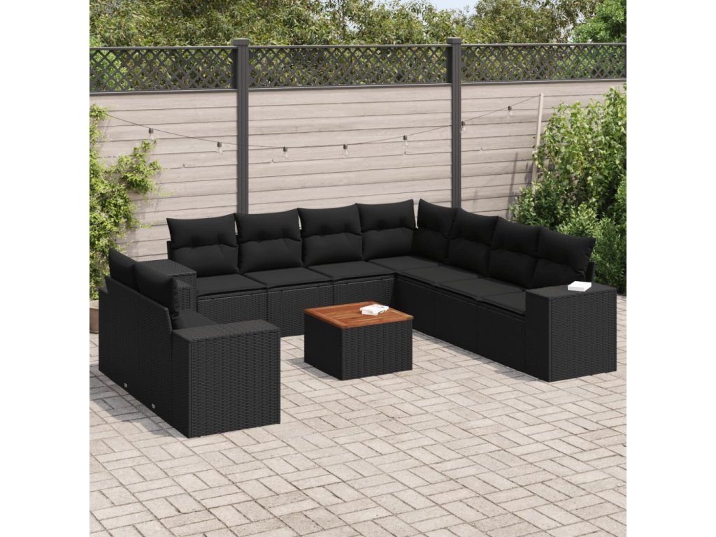 10dílná zahradní sedací souprava s poduškami černá polyratan 3225509