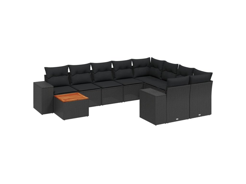 10dílná zahradní sedací souprava s poduškami černá polyratan 3225607