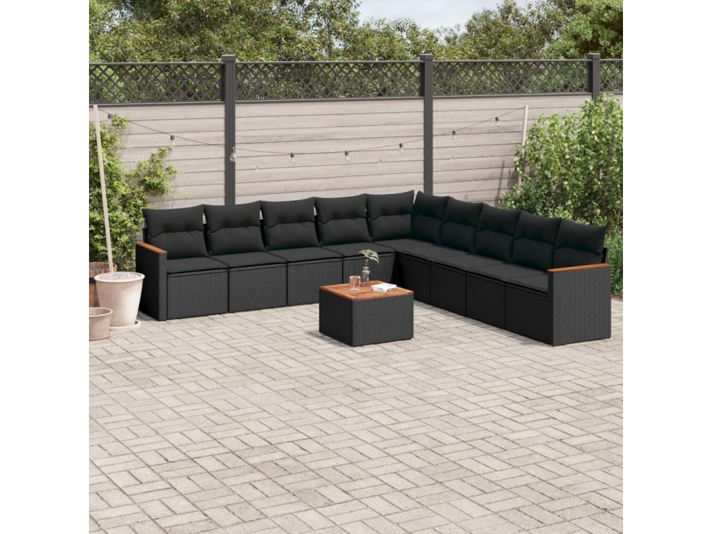 10dílná zahradní sedací souprava s poduškami černá polyratan 3226062