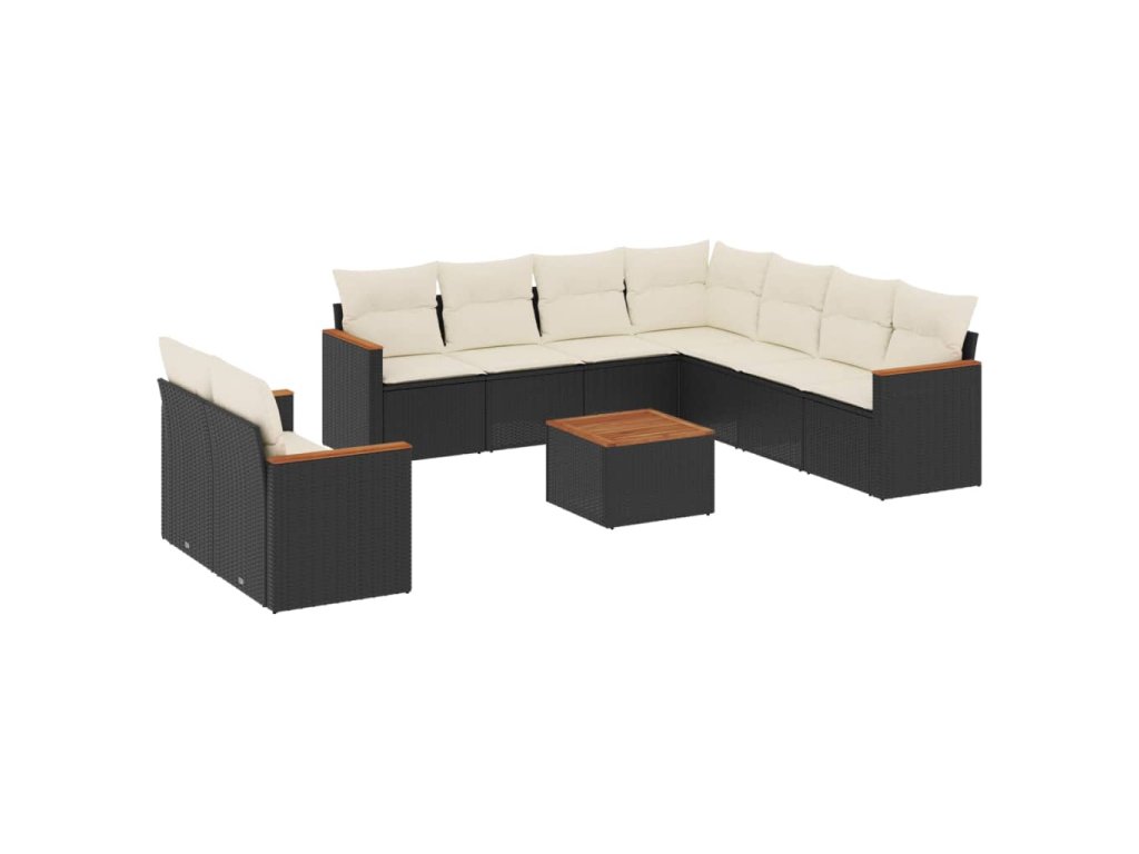 10dílná zahradní sedací souprava s poduškami černá polyratan 3226105
