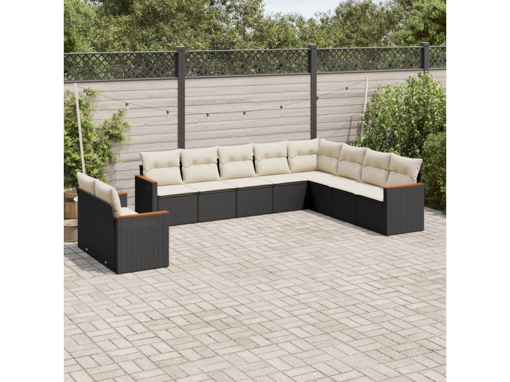 10dílná zahradní sedací souprava s poduškami černá polyratan 3226112