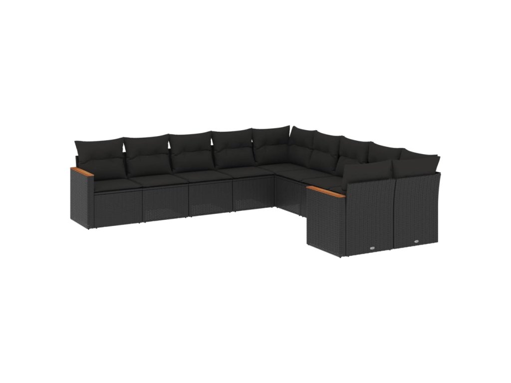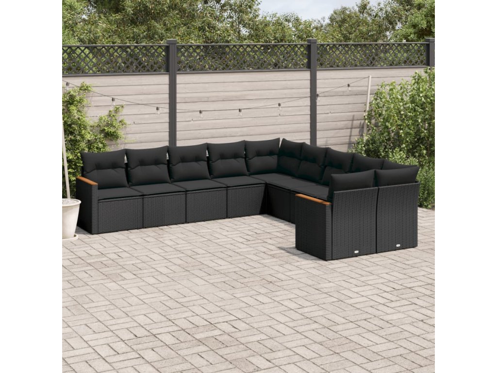 10dílná zahradní sedací souprava s poduškami černá polyratan 3226349