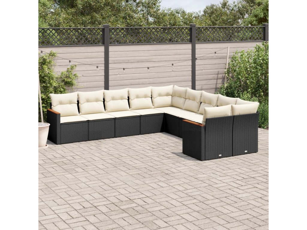 10dílná zahradní sedací souprava s poduškami černá polyratan 3226350