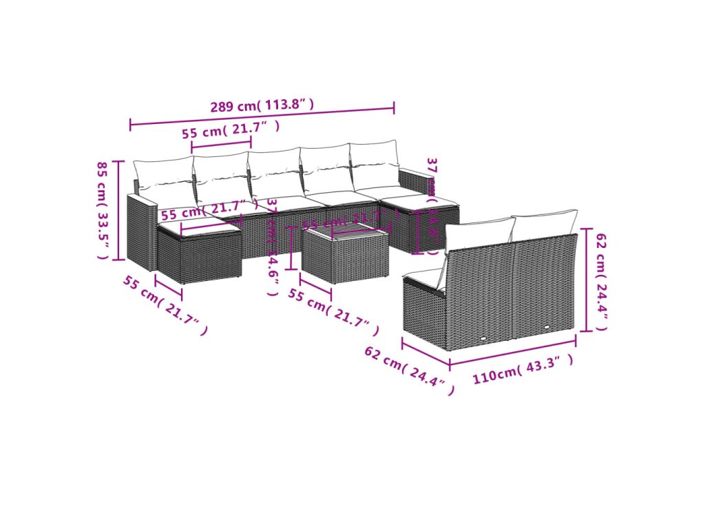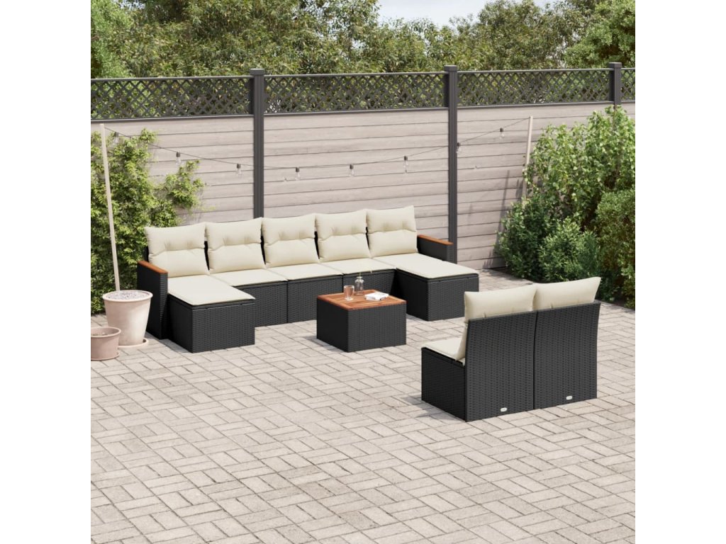 10dílná zahradní sedací souprava s poduškami černá polyratan 3226378
