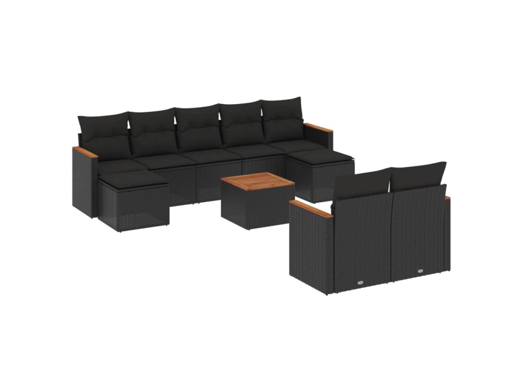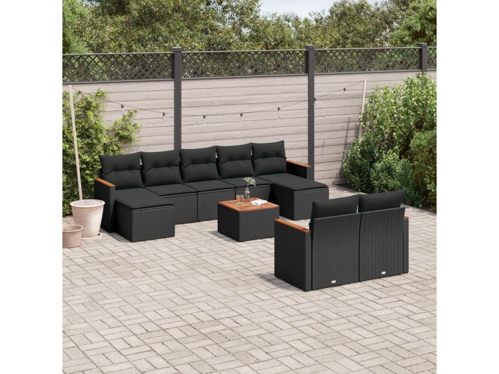 10dílná zahradní sedací souprava s poduškami černá polyratan 3226405