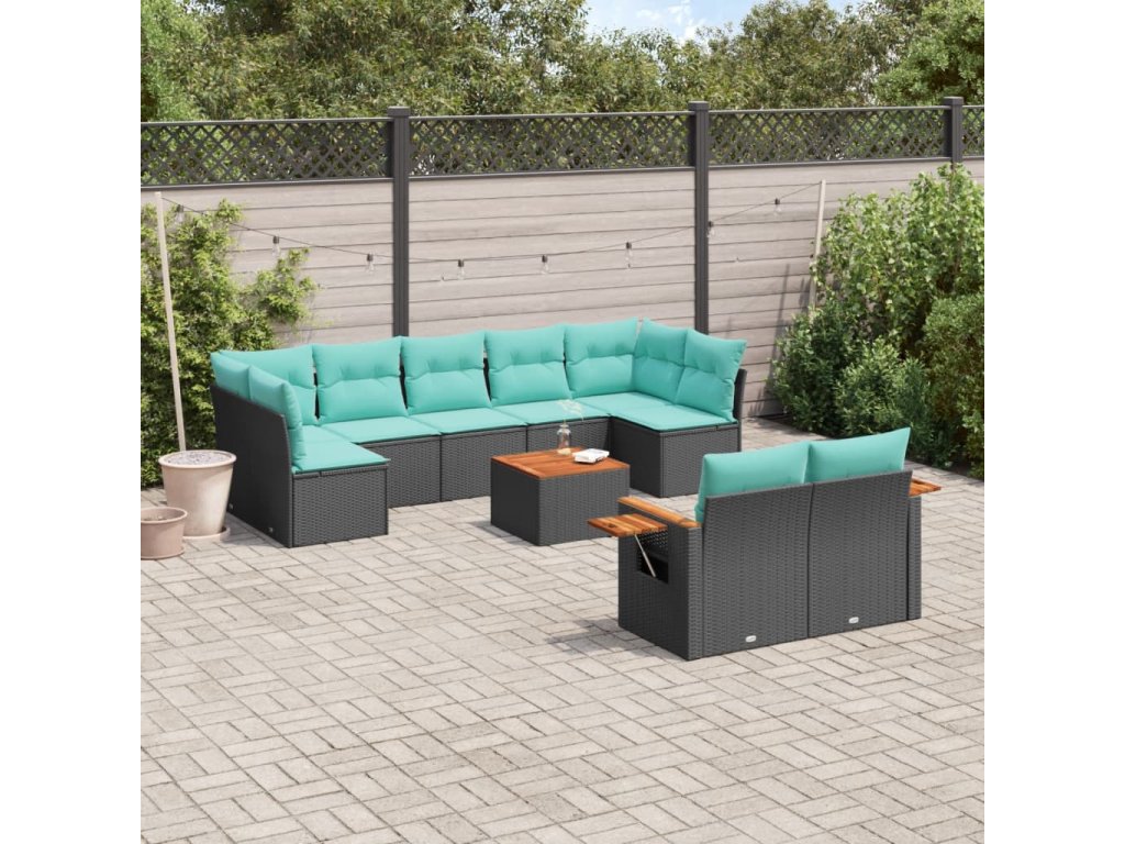 10dílná zahradní sedací souprava s poduškami černá polyratan 3227135