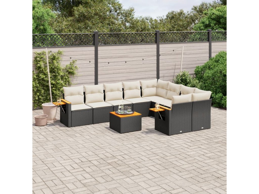 10dílná zahradní sedací souprava s poduškami černá polyratan 3227148