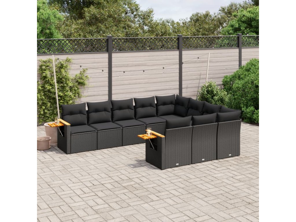 10dílná zahradní sedací souprava s poduškami černá polyratan 3227175