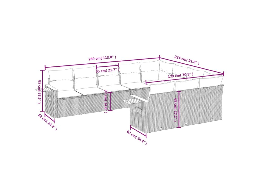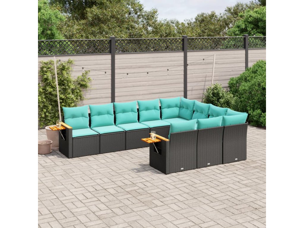 10dílná zahradní sedací souprava s poduškami černá polyratan 3227177
