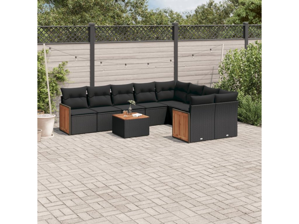 10dílná zahradní sedací souprava s poduškami černá polyratan 3227987
