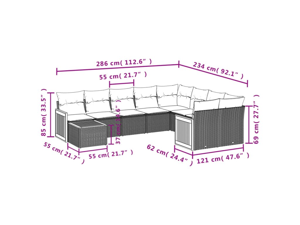 10dílná zahradní sedací souprava s poduškami černá polyratan 3227995