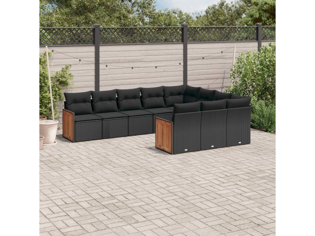 10dílná zahradní sedací souprava s poduškami černá polyratan 3228015