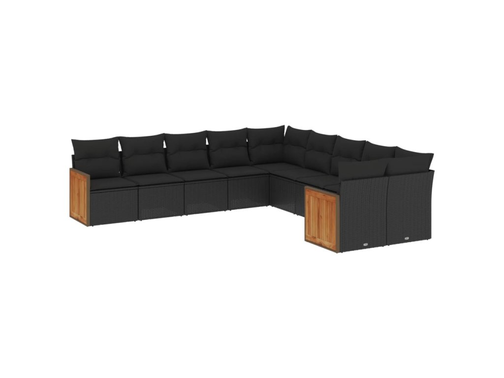 10dílná zahradní sedací souprava s poduškami černá polyratan 3228029