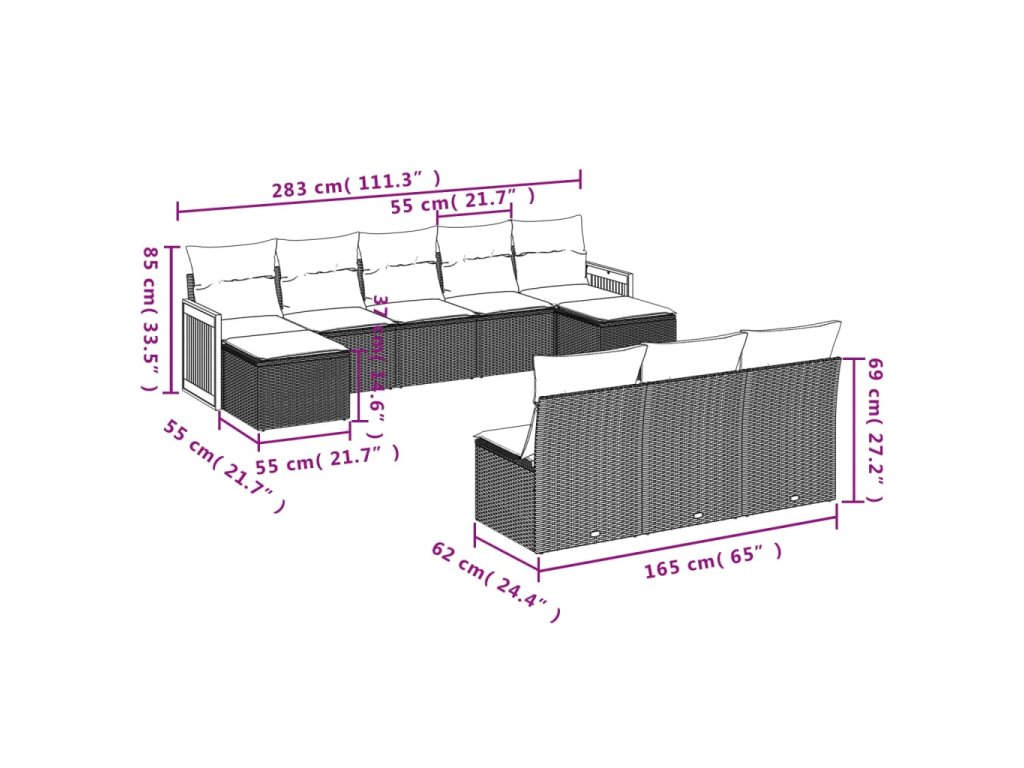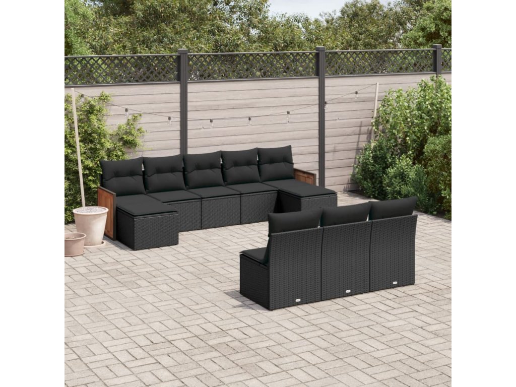 10dílná zahradní sedací souprava s poduškami černá polyratan 3228064