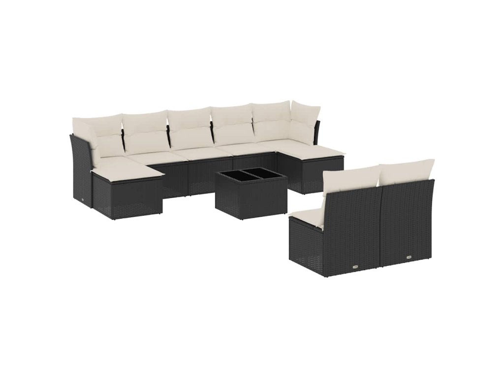 10dílná zahradní sedací souprava s poduškami černá polyratan 3250115