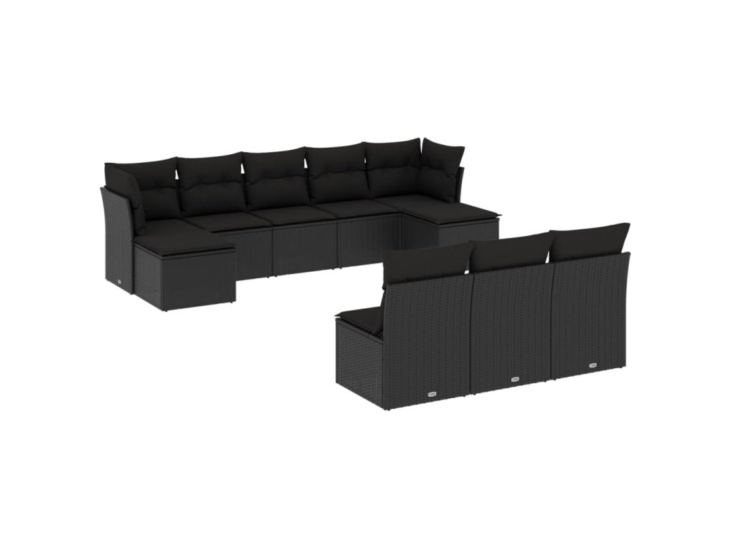 10dílná zahradní sedací souprava s poduškami černá polyratan 3250124