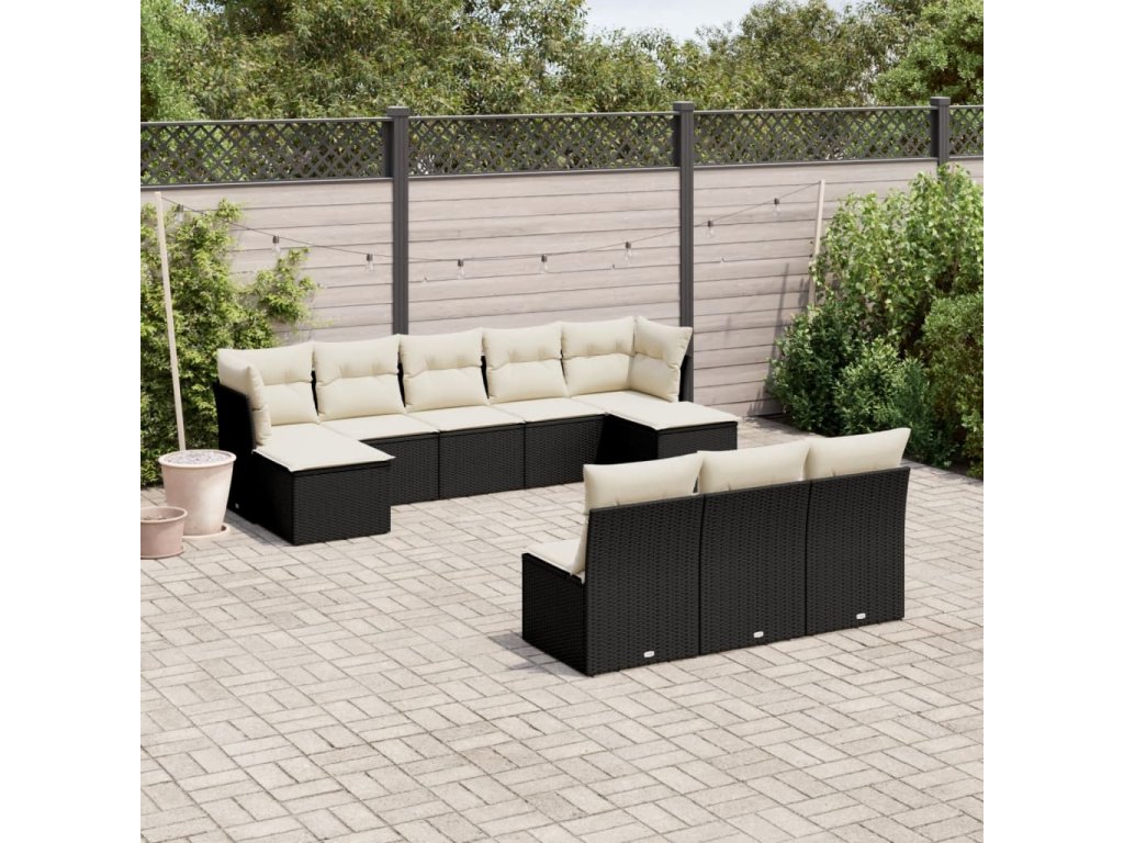 10dílná zahradní sedací souprava s poduškami černá polyratan 3250125