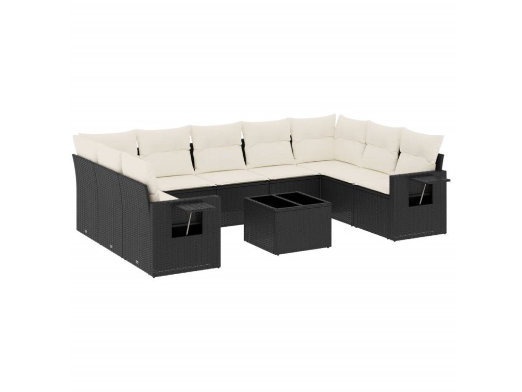 10dílná zahradní sedací souprava s poduškami černá polyratan 3252943