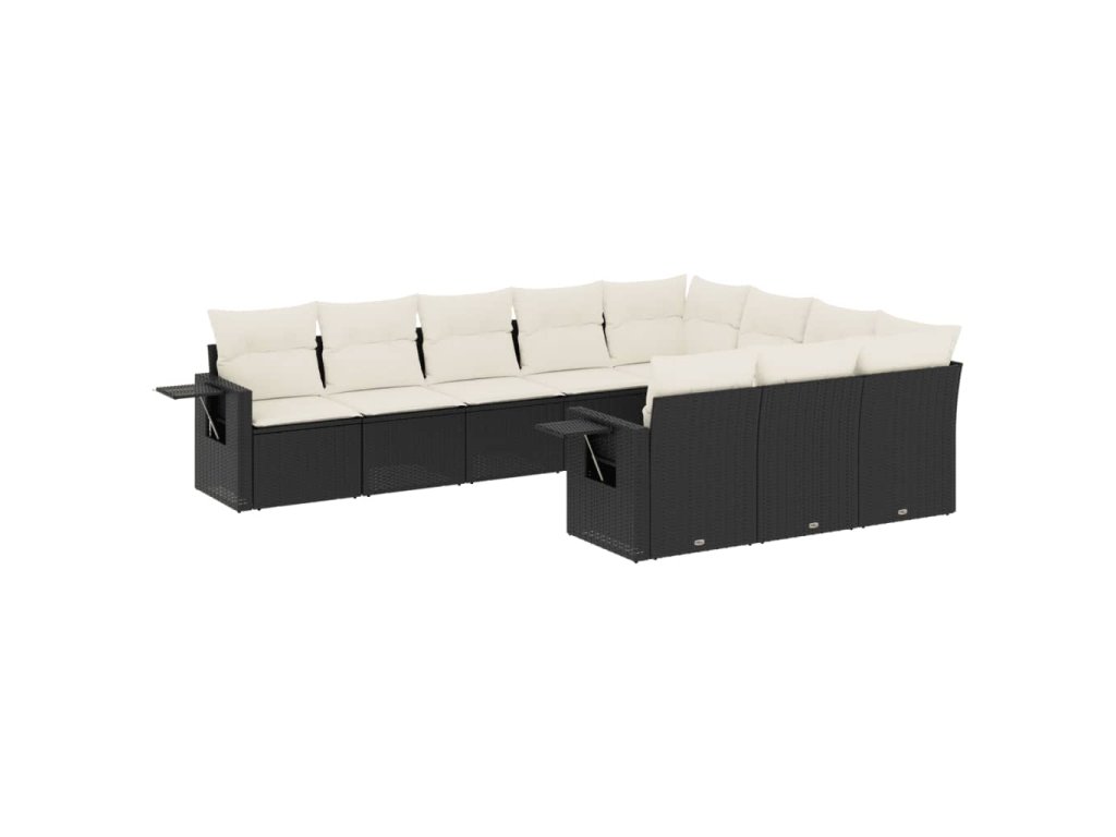 10dílná zahradní sedací souprava s poduškami černá polyratan 3253023