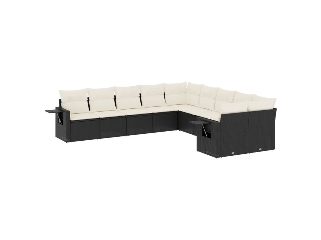 10dílná zahradní sedací souprava s poduškami černá polyratan 3253043
