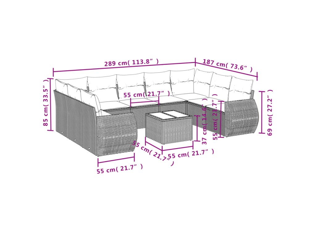 Tato zahradní sedací souprava je dokonalým doplňkem vaší zahrady, terasy nebo dvorku a poskytne vám pohodlné a příjemné místo, kde si můžete povídat s rodinou a přáteli nebo jen tak odpočívat a užívat si pobyt venku.