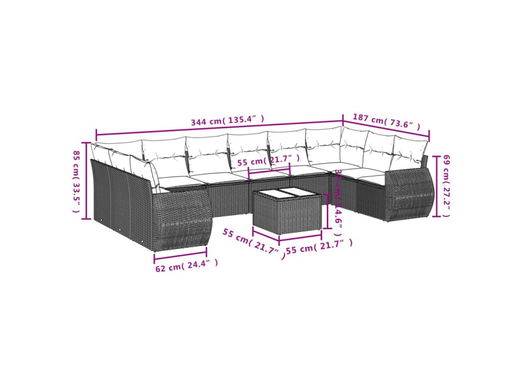10dílná zahradní sedací souprava s poduškami černá polyratan 3254203