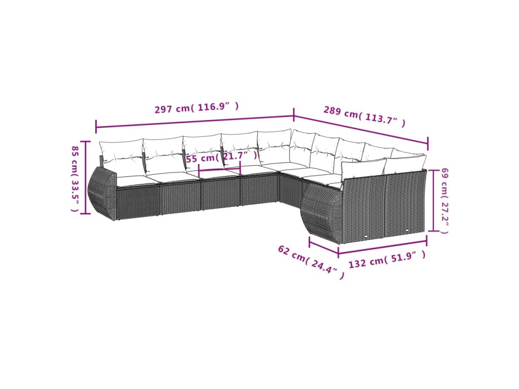 10dílná zahradní sedací souprava s poduškami černá polyratan 3254243