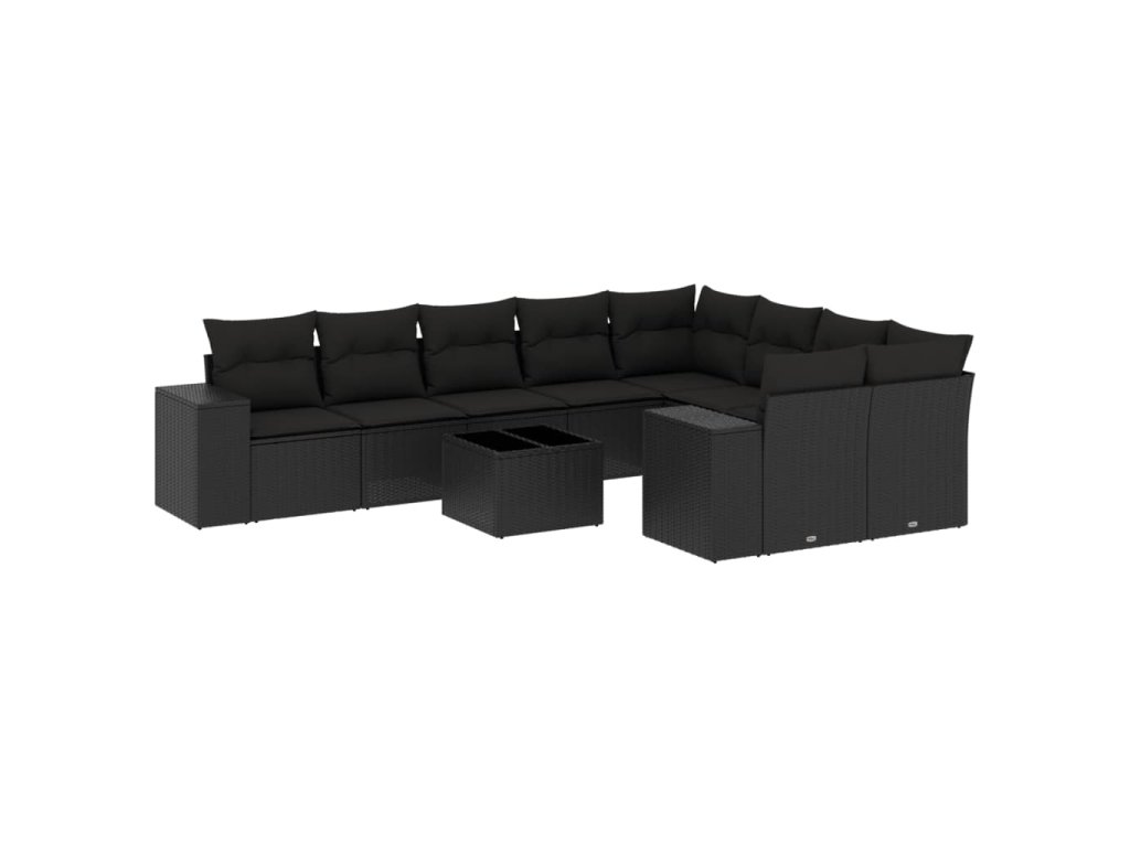 10dílná zahradní sedací souprava s poduškami černá polyratan 3255382