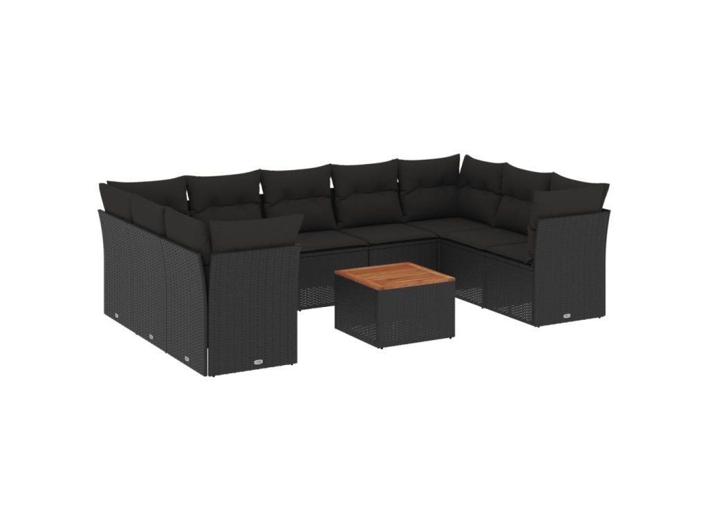 10dílná zahradní sedací souprava s poduškami černá polyratan 3256132