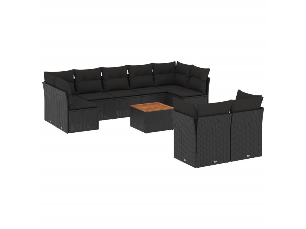 10dílná zahradní sedací souprava s poduškami černá polyratan 3256139
