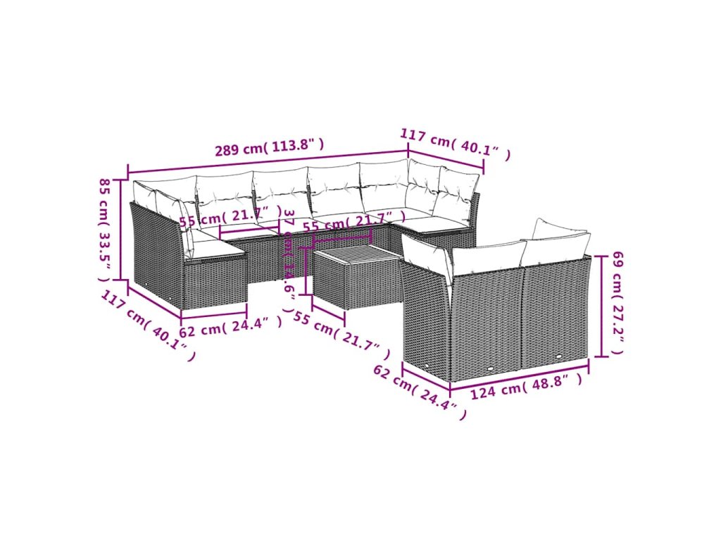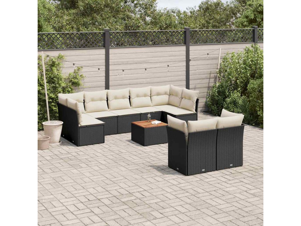 10dílná zahradní sedací souprava s poduškami černá polyratan 3256140