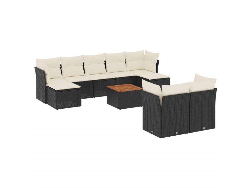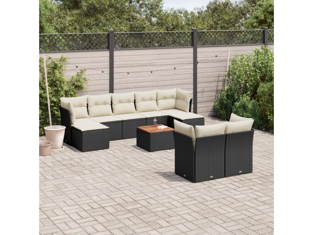 10dílná zahradní sedací souprava s poduškami černá polyratan 3256203