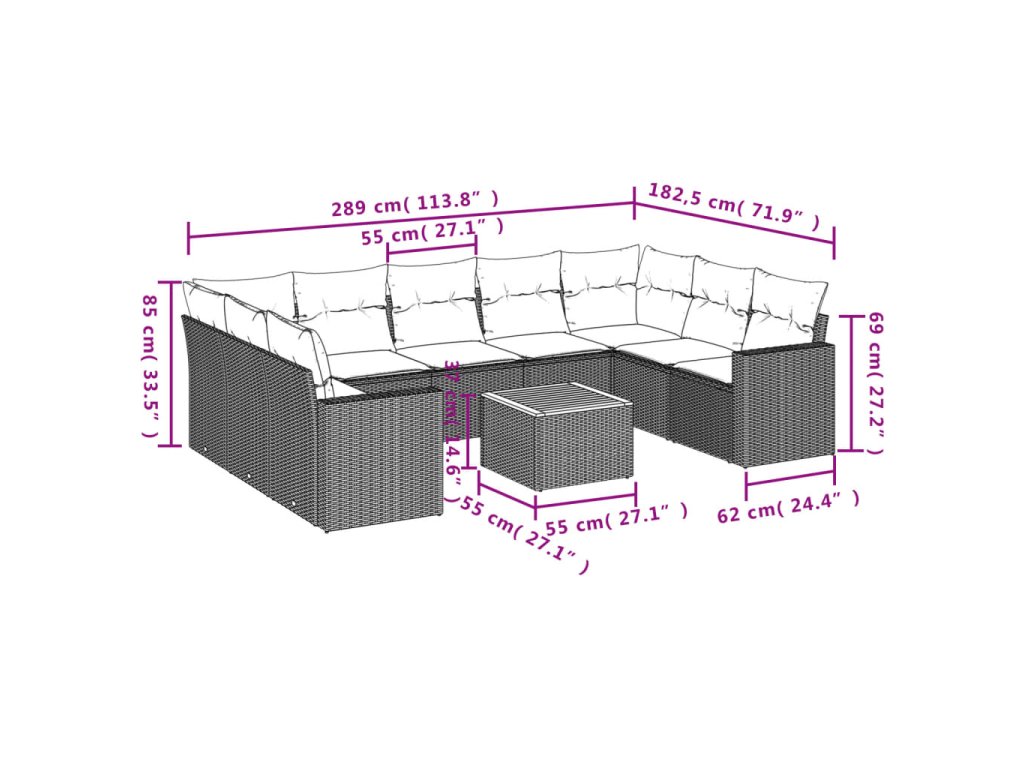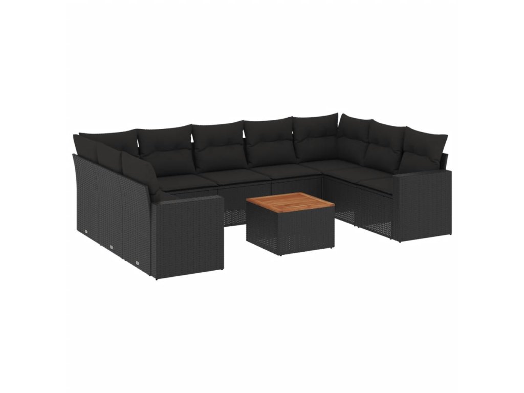 10dílná zahradní sedací souprava s poduškami černá polyratan 3256594
