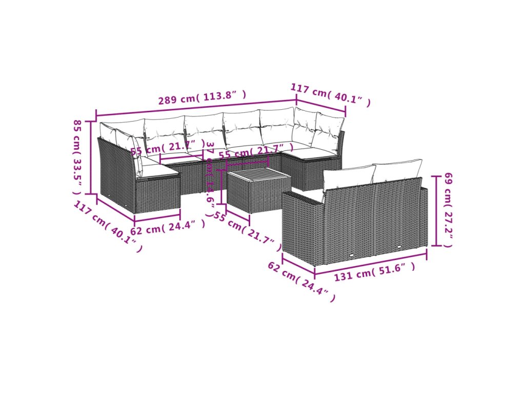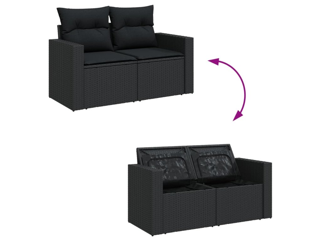 10dílná zahradní sedací souprava s poduškami černá polyratan 3256601