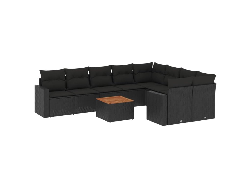 10dílná zahradní sedací souprava s poduškami černá polyratan 3256608