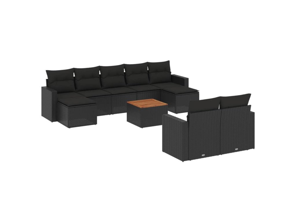 10dílná zahradní sedací souprava s poduškami černá polyratan 3256664