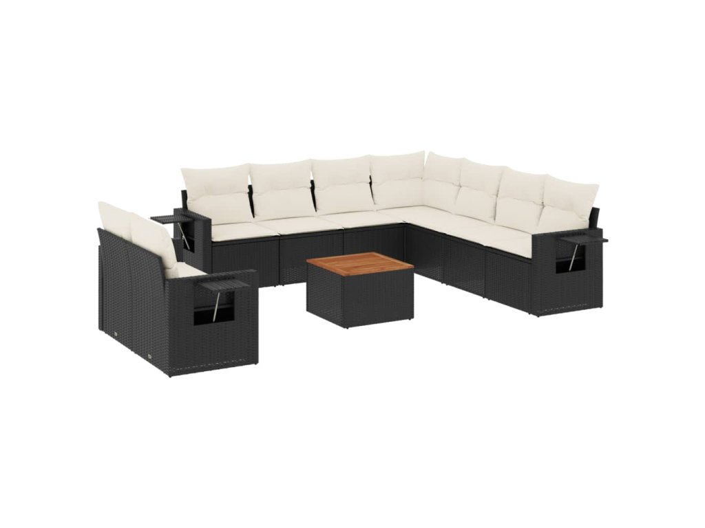 10dílná zahradní sedací souprava s poduškami černá polyratan 3256959