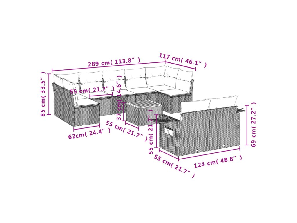 10dílná zahradní sedací souprava s poduškami černá polyratan 3257042