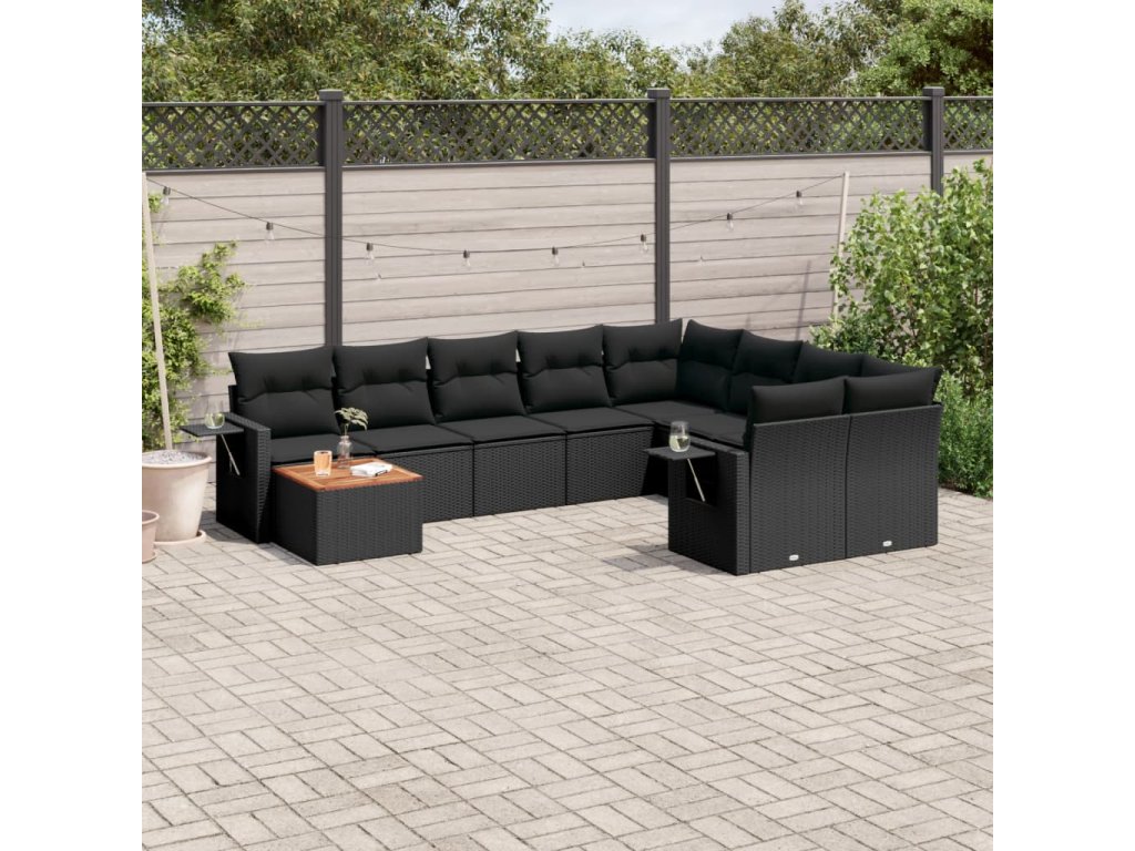 10dílná zahradní sedací souprava s poduškami černá polyratan 3257056